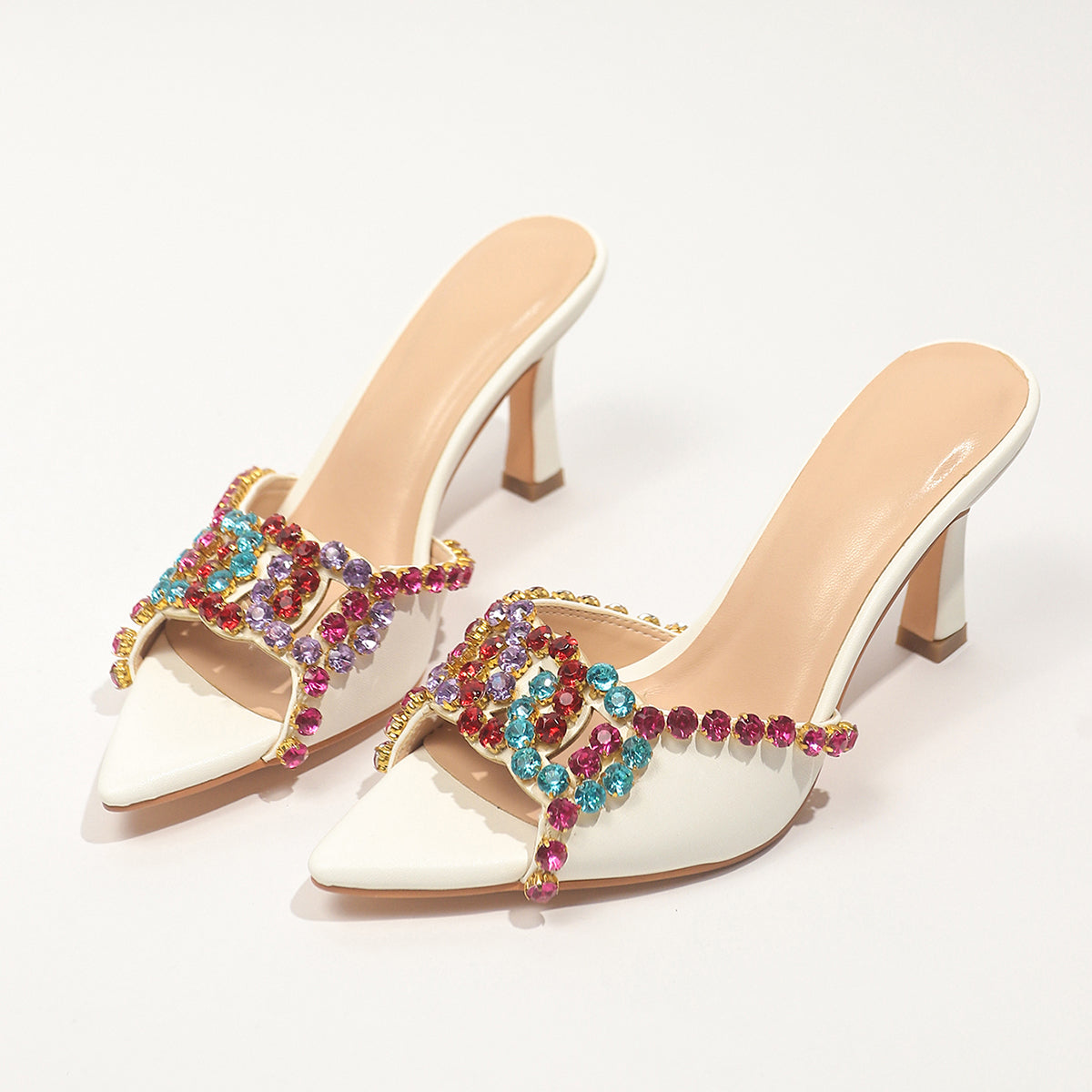Make a bold statement with these stunning peep-toe stiletto mule sandals. Featuring a sleek pointed toe and high heels, these slides are designed to turn heads on stage, at parties, or during special events.